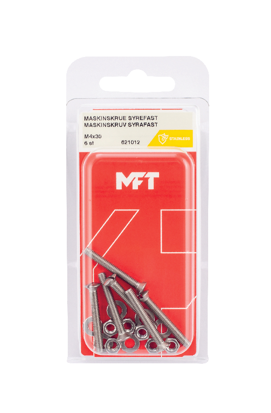 MFT Maskinskruv används tillsammans med mutter och planbricka vid sammanskruvning av detaljer. För inomhus och utomhus bruk.