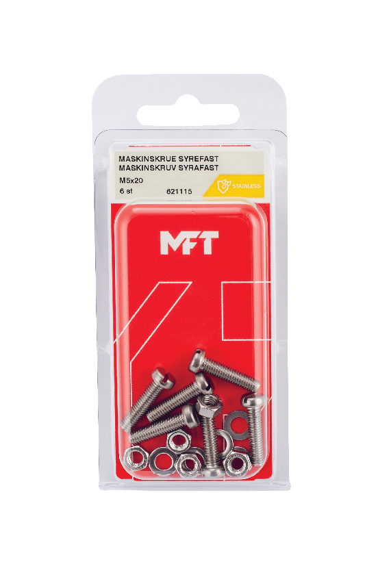 MFT Maskinskruv användes tillsammans med mutter och bricka i skruvförband. För inomhus och utomhus bruk.
