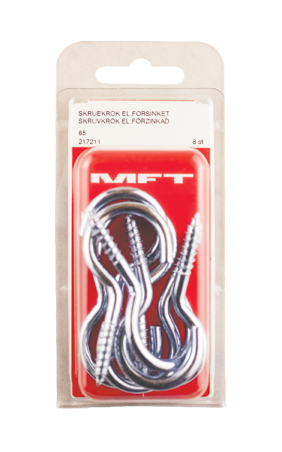 MFT Skruvkrok är avsedd för lätta montage i trä-/ spån-/ plywood material mm. För inomhus bruk. Montage sker för handkraft och hela trägängan skall skruvas in i materialet.