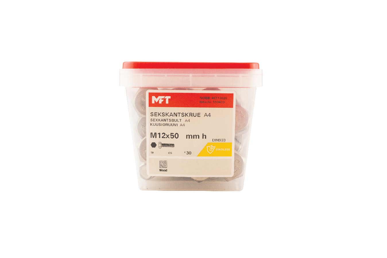MFT Sexkantskruv M6S används tillsammans med mutter vid sammanskruvning av detaljer. För inomhus och utomhus bruk.