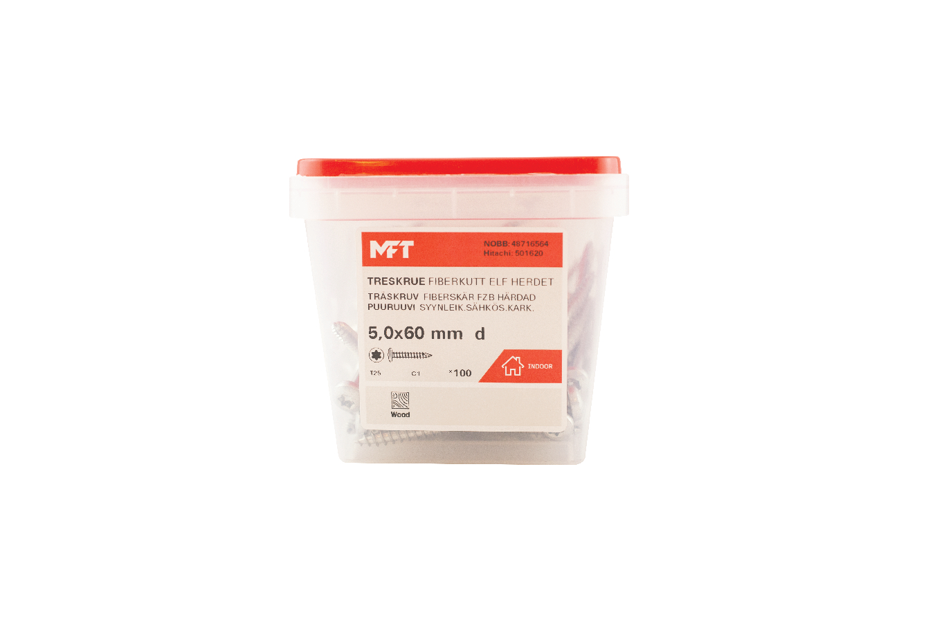 MFT Träskruv kullrig med blankförzinkad ytbehandling är avsedd för montage i trä, plugg, spån-/ board material inomhus. Rek. varvtal: 400-1200/min.