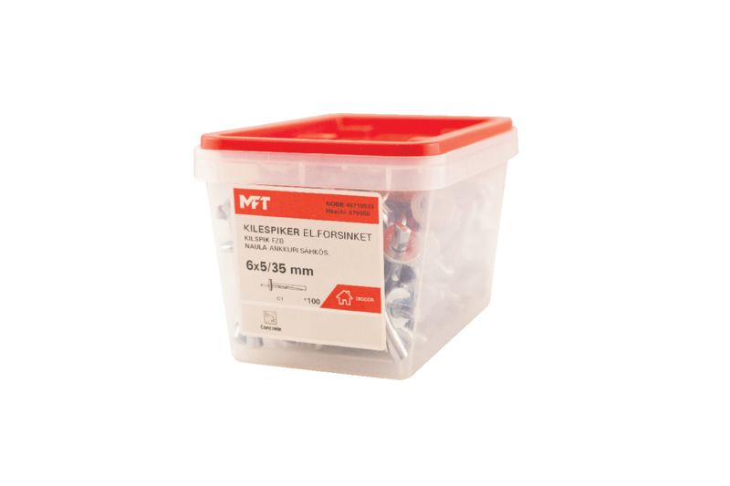 MFT Kilankare är avsedd för montage av tunna stålprofiler, plåtband, upphängningsband mm. i betong. Genomsticksmontage. Betongen förborras och kilankaret slås in med en vanlig hammare. Belastning - Lätt/medel. För inomhus bruk.