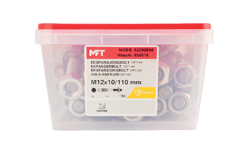 MFT Expanderbult, ETA-16/0823 tekniskt godkännande och CE-märkt. Levereras i plastbox. 30 st/frp.