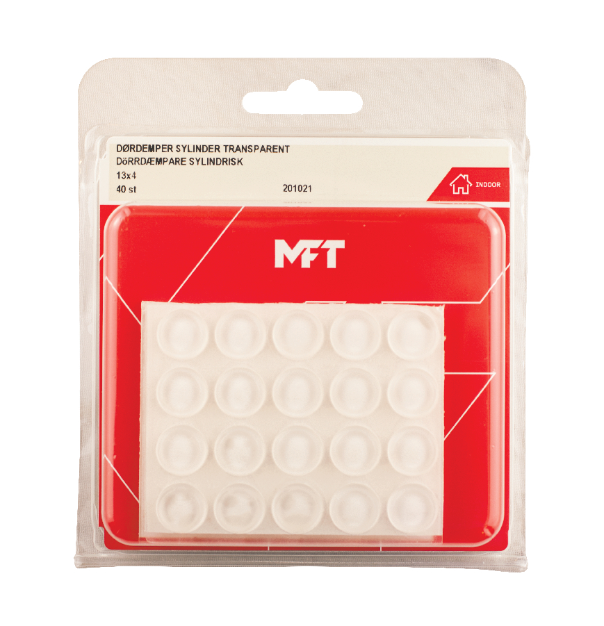 MFT Dörrdämpare är tillverkad i transparent plast. Dörrdämparen är cylinderformad och har en flat självhäftande klister yta. Diam.: 13mm. Tjocklek: 4mm.