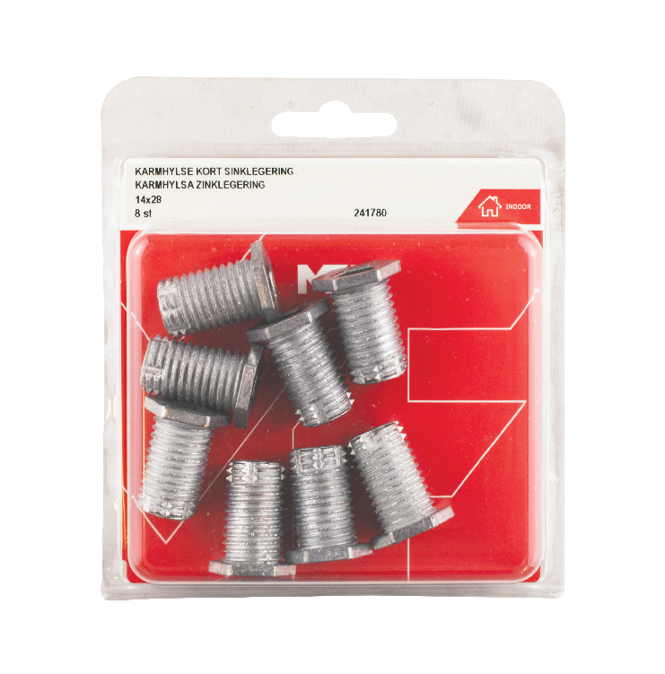 MFT Karmhylsa kort är avsedd för montering av dörr och fönsterkarmar, ger ett stabilt och säkert montage utan att behöva använda kilar. Karmen förborras med 14mm. Använd MFT träskruv för MFT karmhylsa eller MFT betongskruv för MFT Karmhylsa i betong tillsammans med nylonplugg. Avsluta montaget med att täcka borrhålet med MFT Täcklock.