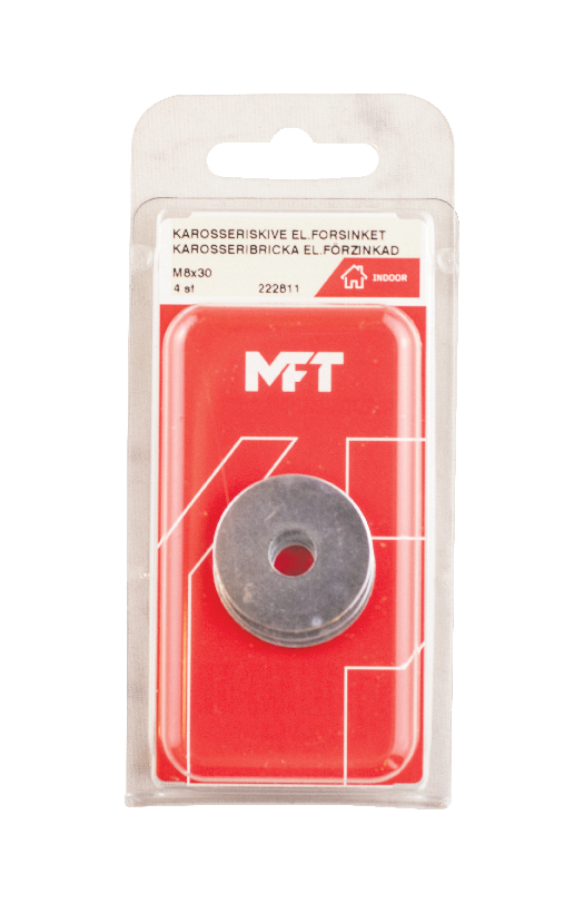 MFT Karosseribricka används tillsammans med skruv/bult för att öka tryckfördelningen vid sammanskruvning av detaljer. För inomhus bruk.