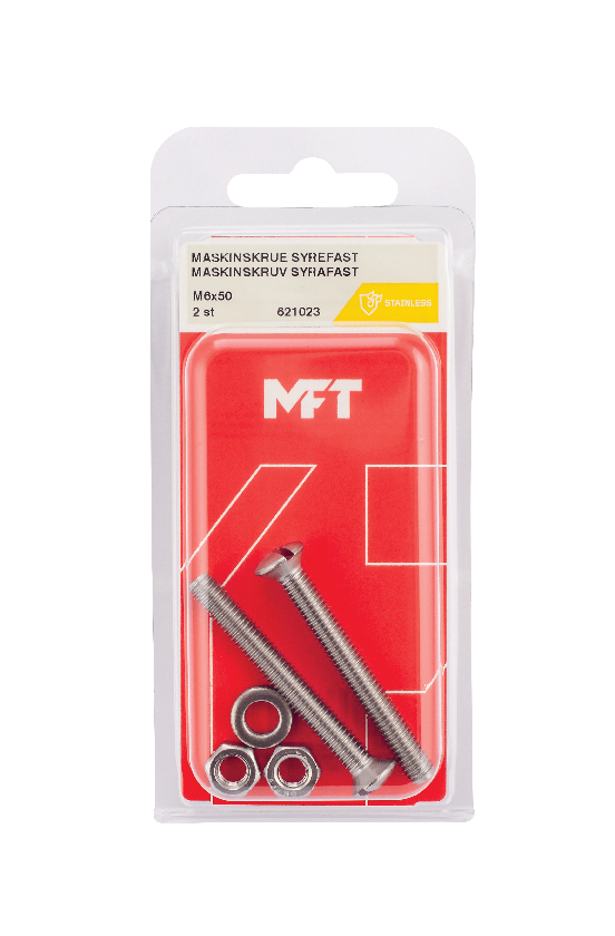 MFT Maskinskruv används tillsammans med mutter och planbricka vid sammanskruvning av detaljer. För inomhus och utomhus bruk.