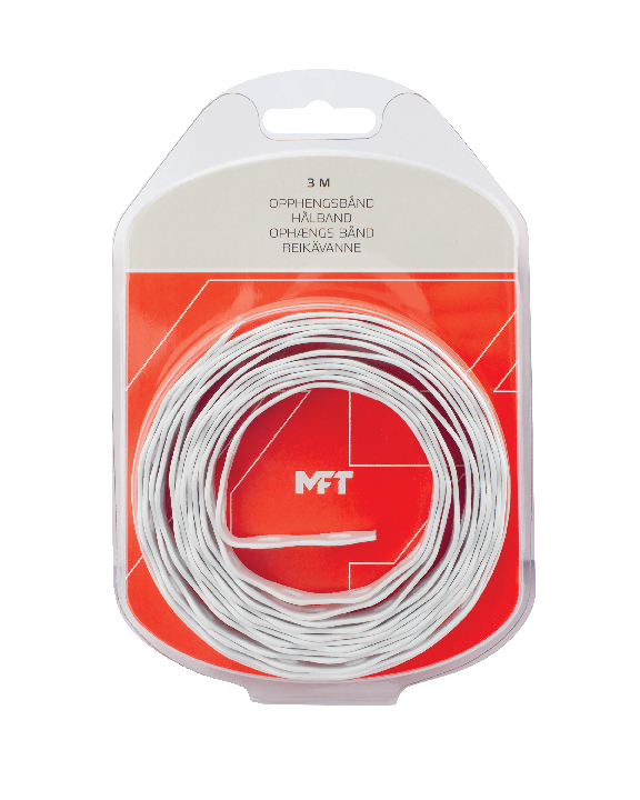 MFT Hålband är tillverkat av varmförzinkad stål, överdraget med vit UV-beständig plast. Goda isolerings egenskaper med brett temperaturområde: -100 °C till +60 °C. Max konstant temperatur: +50 °C. Dim. 17x0,8 Längd 3 m.