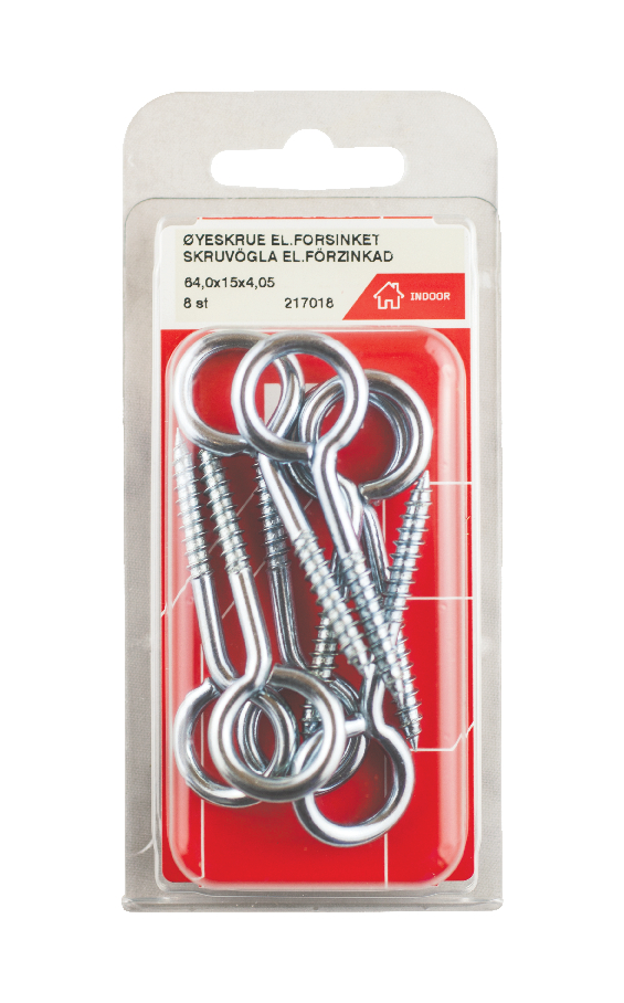 MFT Ögleskruv är tillverkad av stål med en blankförzinkad ytbehandling. Total längd: 64mm. Ögla invändigt: 15mm. Tråd diam.: 4mm. Gänglängd: 26,6mm.