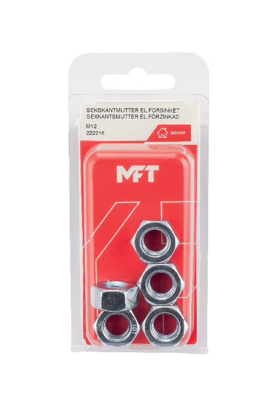 MFT Sexkantmutter M6M används tillsammans med skruv/bult vid sammanskruvning av detaljer. För inomhus bruk.