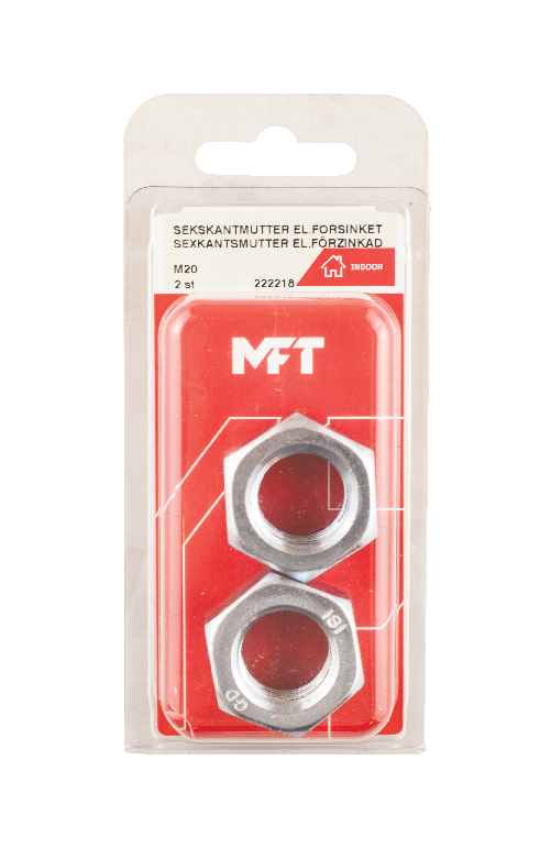 MFT Sexkantmutter M6M används tillsammans med skruv/bult vid sammanskruvning av detaljer. För inomhus bruk.