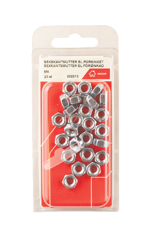 MFT Sexkantmutter M6M används tillsammans med skruv/bult vid sammanskruvning av detaljer. För inomhus bruk.