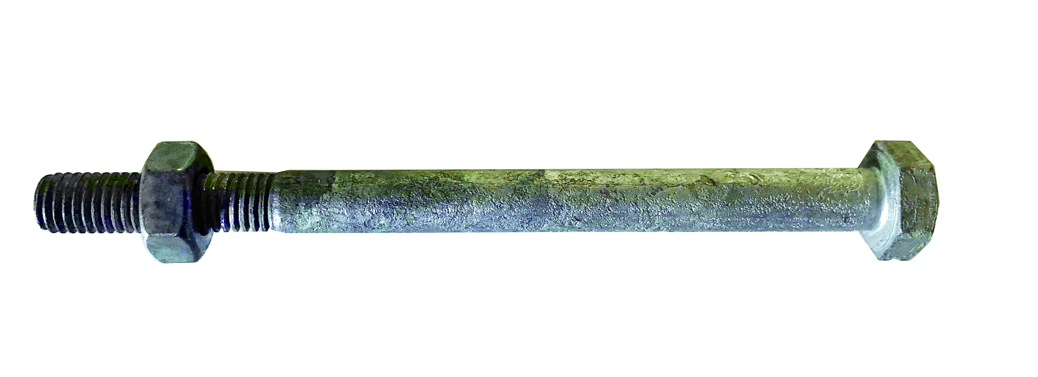 Sexkantskruv M6S med mutter, tillverkad av härdat karbonstål, kvalitet 8.8 och enligt DIN931/ISO4014/DIN934-standard. Delgängad i korrosivitetsklass C3. Skruv och mutter har en varmförzinkad ytbehandling.