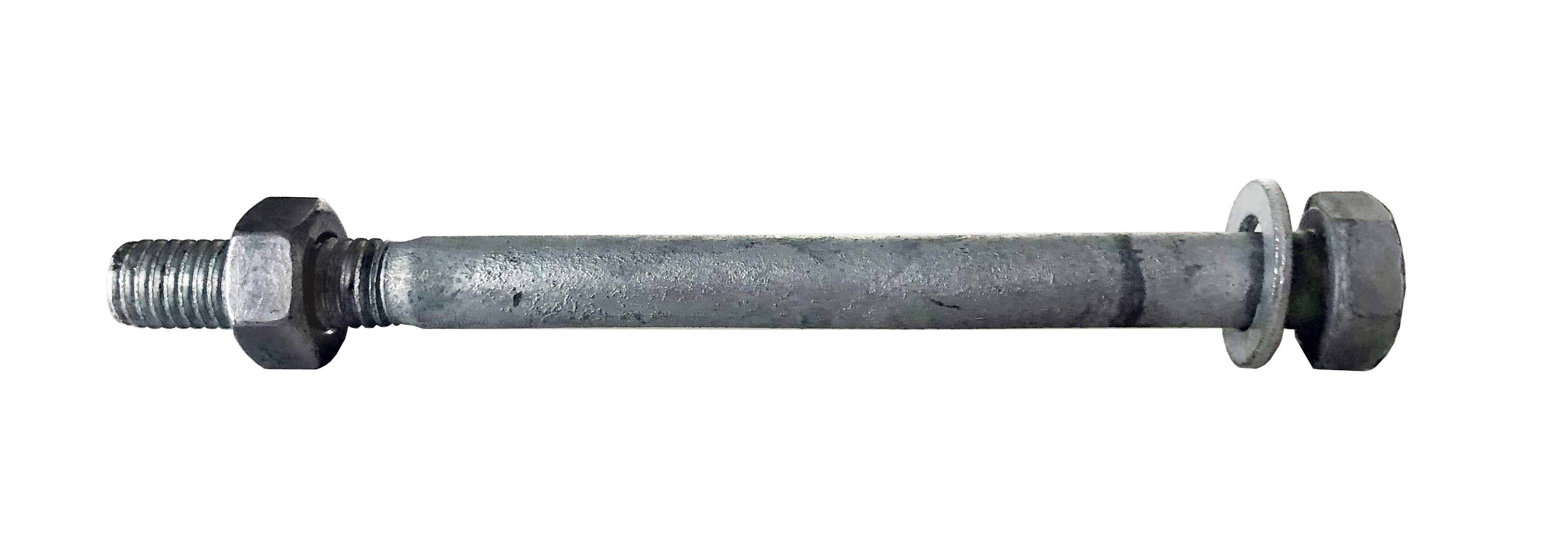 Sexkantskruv M6S med bricka och mutter, tillverkad av härdat karbonstål, kvalitet 8.8 och enligt DIN933/ISO4014/DIN934/DIN125-standard. Helgängad i korrosivitetsklass C3. Skruv, mutter och bricka har en varmförzinkad ytbehandling.