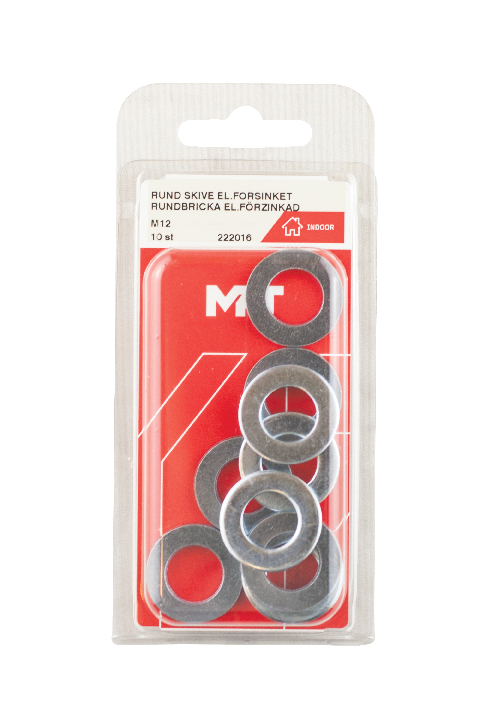 MFT Planbricka rund är tillverkad enligt DIN125 standard i härdat kolstål. Brickan har en blankförzinkad ytbehandling. Korrosivitetsklass C1.