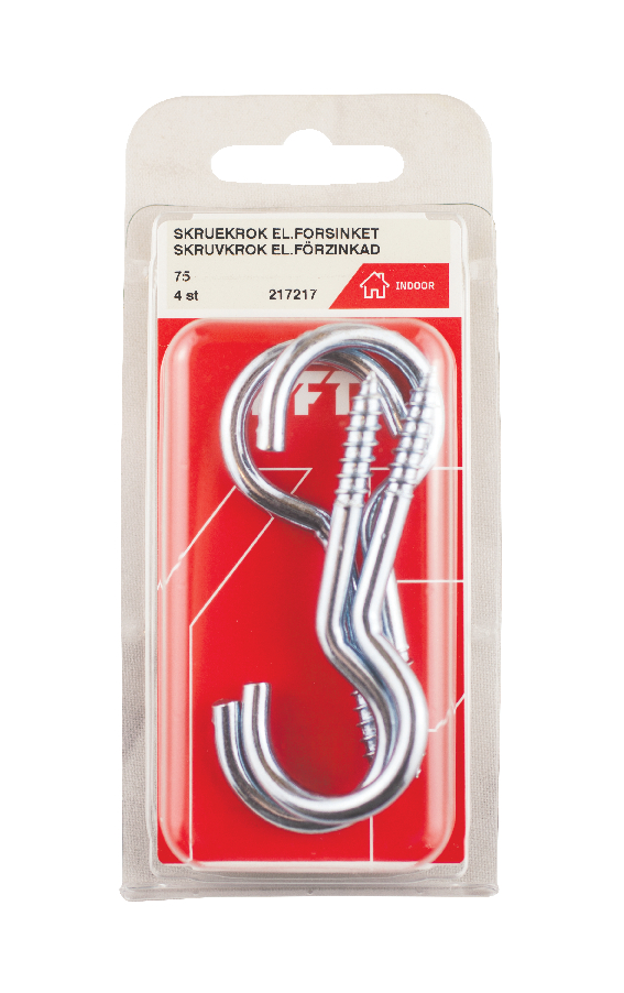 MFT Skruvkrok är avsedd för lätta montage i trä-/ spån-/ plywood material mm. För inomhus bruk. Montage sker för handkraft och hela trägängan skall skruvas in i materialet.