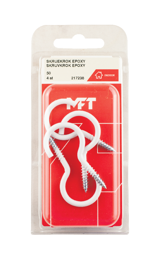 MFT Skruvkrok är avsedd för lätta montage i trä-/ spån-/ plywood material mm. För inomhus bruk. Montage sker för handkraft och hela trägängan skall skruvas in i materialet.