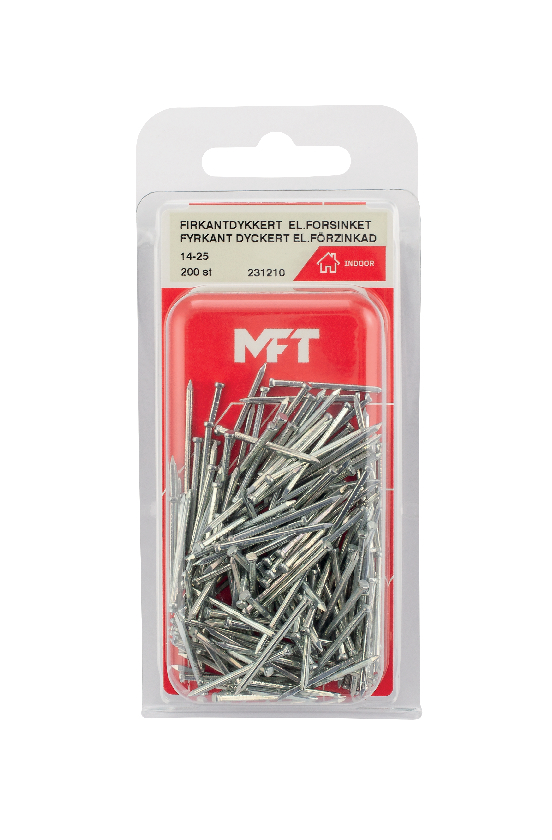 MFT Dyckert används för dold eller diskret spikning i panelskivor, spånskivor och andra hårda skivmaterial. För inomhus bruk.
