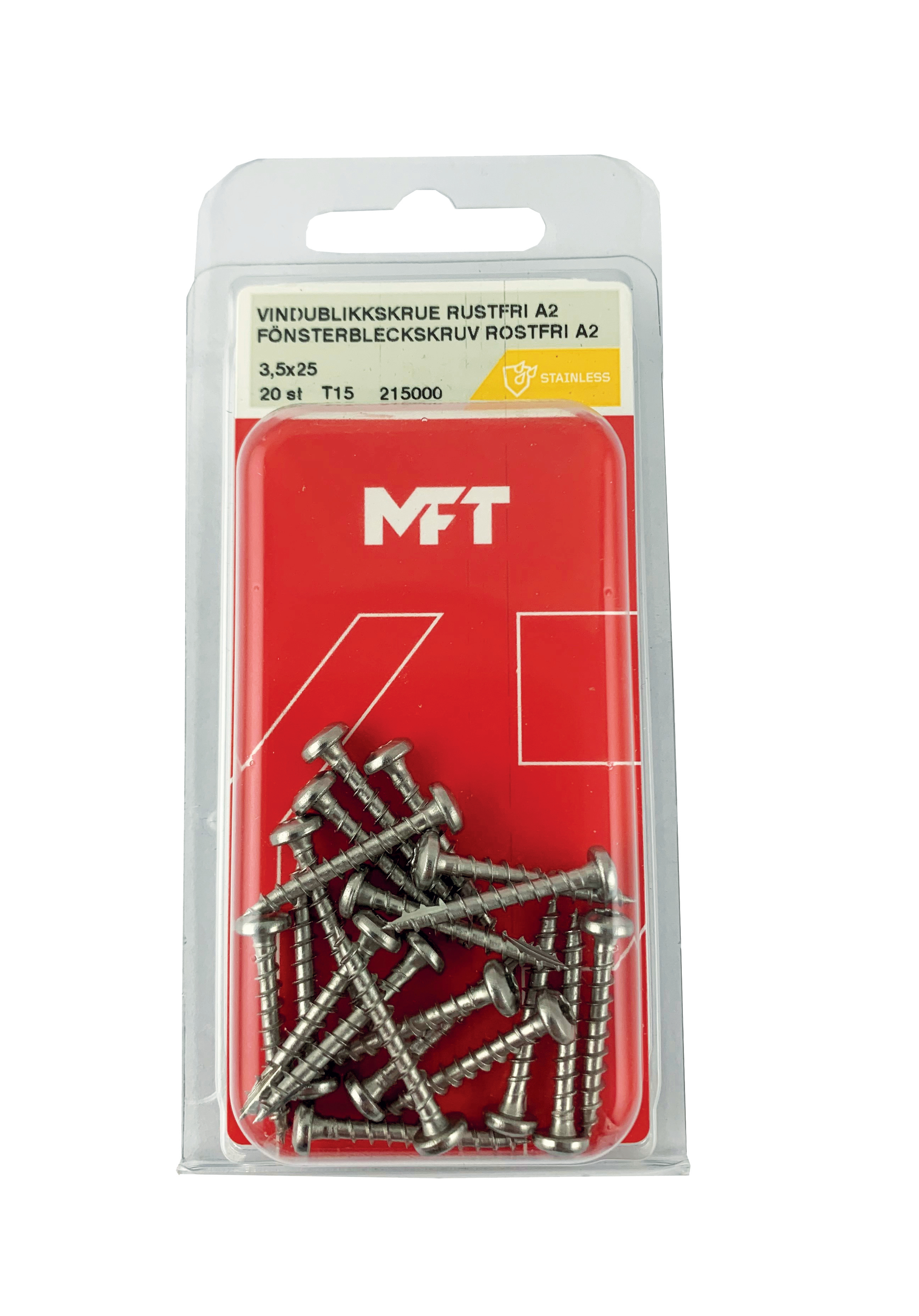 MFT Fönsterbleckskruv är tillverkad av rostfritt stål A2 - kvalitet AISI 304. Skruven har flat undersida på huvudet som skapar ett vädersäkert förband när fönsterblecket skruvas fast mot karmen. Korrosivitetsklass C4. Kullrigt huvud och TX15 bitsfäste. Rek. varvtal: 800-1800 /min.