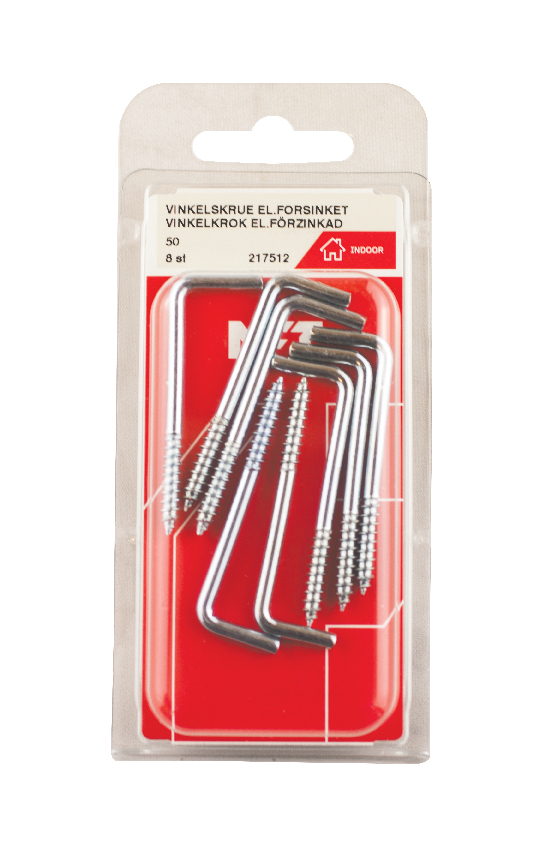 MFT Vinkelkrok är tillverkad av stål med en blankförzinkad ytbehandling. Total längd: 52mm. Tråd diam.: 3,3mm. Gänglängd: 20mm.