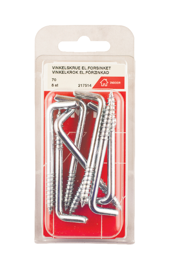 MFT Vinkelkrok är tillverkad av stål med en blankförzinkad ytbehandling. Total längd: 72mm. Tråd diam.: 4,9mm. Gänglängd: 26mm.