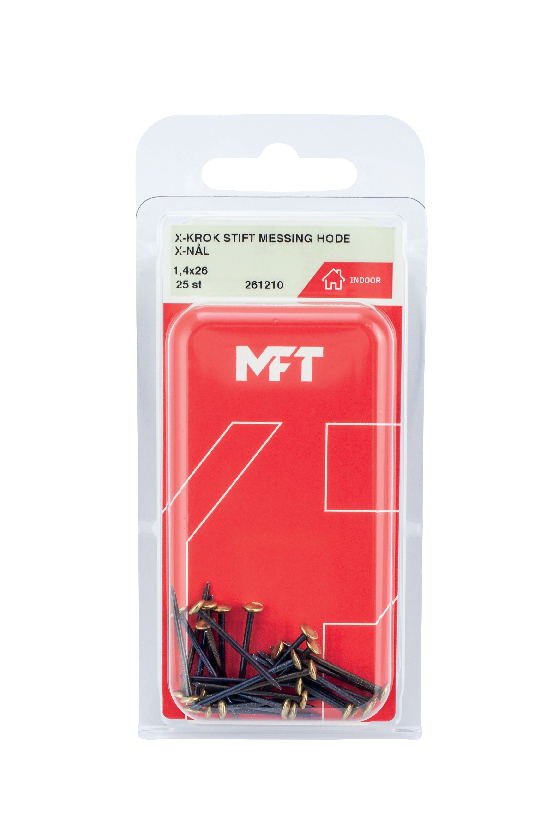 MFT Spik för X-krok är tillverkade av härdat stål och har en mässing färgad skalle.