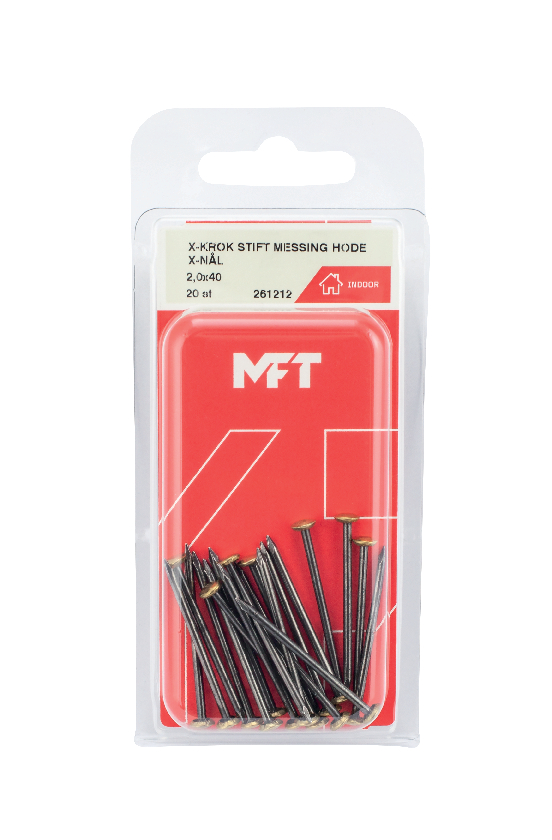 MFT Spik för X-krok är tillverkade av härdat stål och har en mässing färgad skalle.